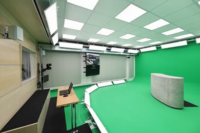 Unser neues Greenscreen-Studio ist ein Raum der unbegrenzten technischen Möglichkeiten. Es ist das perfekte Studio für digitale Veranstaltungen aller Art. Ganz egal, ob Sie sich selbst oder Ihre Produkte präsentieren wollen – in futuristischer Umgebung, mit einem extra auf Ihre Bedürfnisse abgestimmten virtuellen Hintergrund setzen wir Sie in Szene!